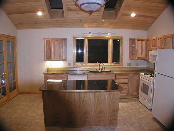 Finished wallsSun all dayWrap around redwood deckKnotty pine vaulted ceilingsSouthern exposureHickory cabinetsGranite kitchen countertops