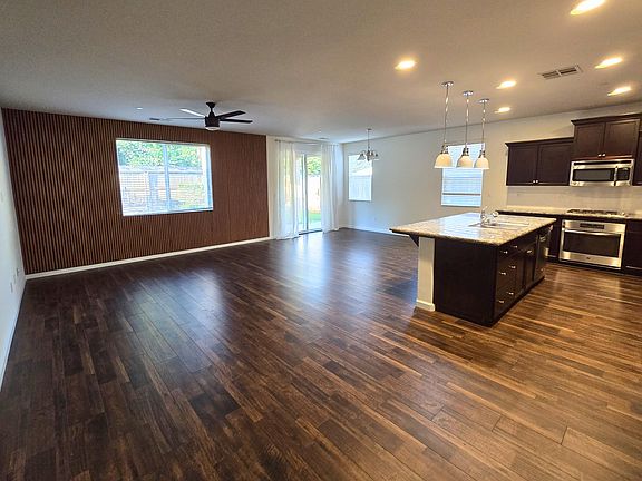 The open-concept living area is perfect for entertaining, with a style that seamlessly flows into the beautiful kitchen, featuring stainless steel appliances. The outdoor synthetic grass in both front and back yards provides easy care and maintenance.