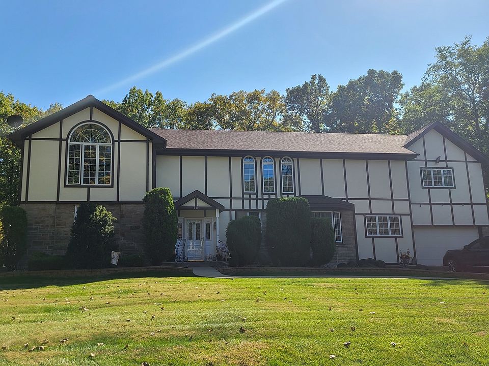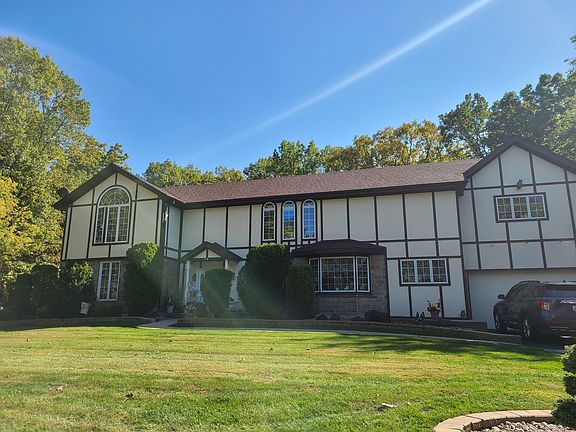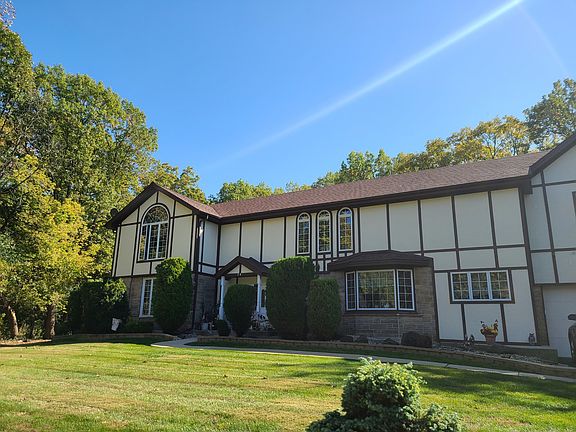 Beautiful one of a kind 2 story, 5 bedroom, 4 bath home with full finished basement. From the grand foyer step up to the spacious living room with fireplace. First floor bedroom with built-in corner desk. Eat-in kitchen with all appliances. Formal dining room, master suite, walk out balcony, double walk in closets. Master bath, whirl pool tub, separate shower and skylight. 2nd bedroom complete with 2 closets. Den/office vaulted ceiling. Family room with fireplace and wet bar. Finished laundry room. Attached garage, inground pool 16x32. Plus 6 person hot tub. Two tiered composite deck. Plus completed fenced yard. Zoned heat and air. Second story was added on in 1985. Nicely landscaped. This house was it all on almost an acre!