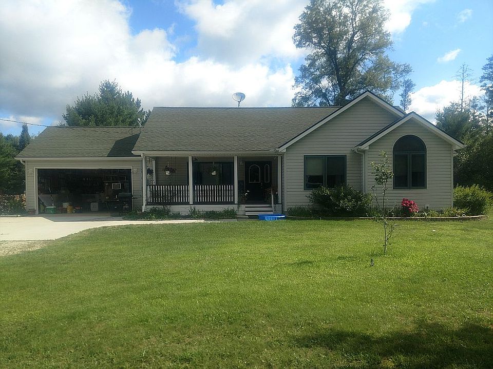 A secluded setting without visible neighbors with a modern, custom family home. 5 bedrooms, 2 1/2 baths, vaulted ceilings and full finish basement. Master suite, wood fireplace and handicap accessible doors. Wood boiler that heats the house, garage, and domestic hot water. Attached heated garage plus two 30x40 pole barns both with power, 22x30 rear deck. All on 20 acres with elevated deer blind, food plot, maintained trails and a large fenced in garden. Contact information at bottom of page.
