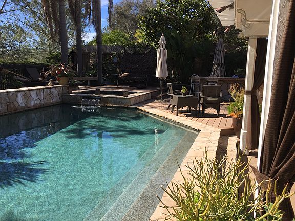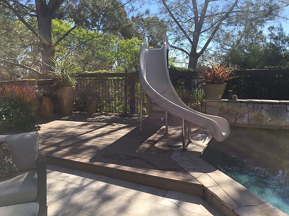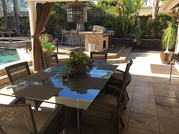 This beautifully partially furnished home includes a 5 star backyard living experience complete with pepple tec pool and spa, waterslide, gourmet outdoor kitchen complete with bbq, wine refrigerator and attached stone dining table for 6 or more people. Inside this beautiful home you will enjoy a stunning kitchen with a spectular granite table opening to an open family room with glass tile fireplace. The master bedroom is quite large and includes an executive office. Sliding glass doors lead to outside area from master and kitchen. The master bath is fully redone with beautiful granite, large jacuzzi tub and heated towel racks. The dining room has a stunning glass table that can seat up to 12 people. Upstairs are the 3 additional bedrooms and one full bath. The entire house comes with maple hardwood flooring that match the kitchen cupboards. Even the garage is fully equipped with beautiful storage and epoxy flooring. This is a must see for a luxury living experience for a family or even a couple who wants some extra space. landlord pays for gardner, trash,and pool. open to 2 year lease