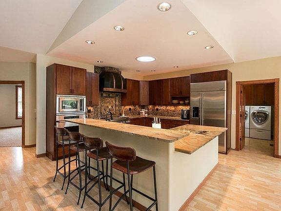Stunning 4 Bedroom,3 bath home has it all & more!Situated on a private 1.0 Acre just a half mile from town with picturesque views. Top of the line kitchen includes gas range & hood, stylish backsplash, convection oven, high end granite. Built in office,3 separate living areas,master suite,whole house stereo,Geothermal,30 x 30 deck,3 car garage.Fantastic LL features:family room;custom wet bar including-dishwasher,ice machine,beverage cooler,wine chiller,oven; tiered theater room with surround sound.