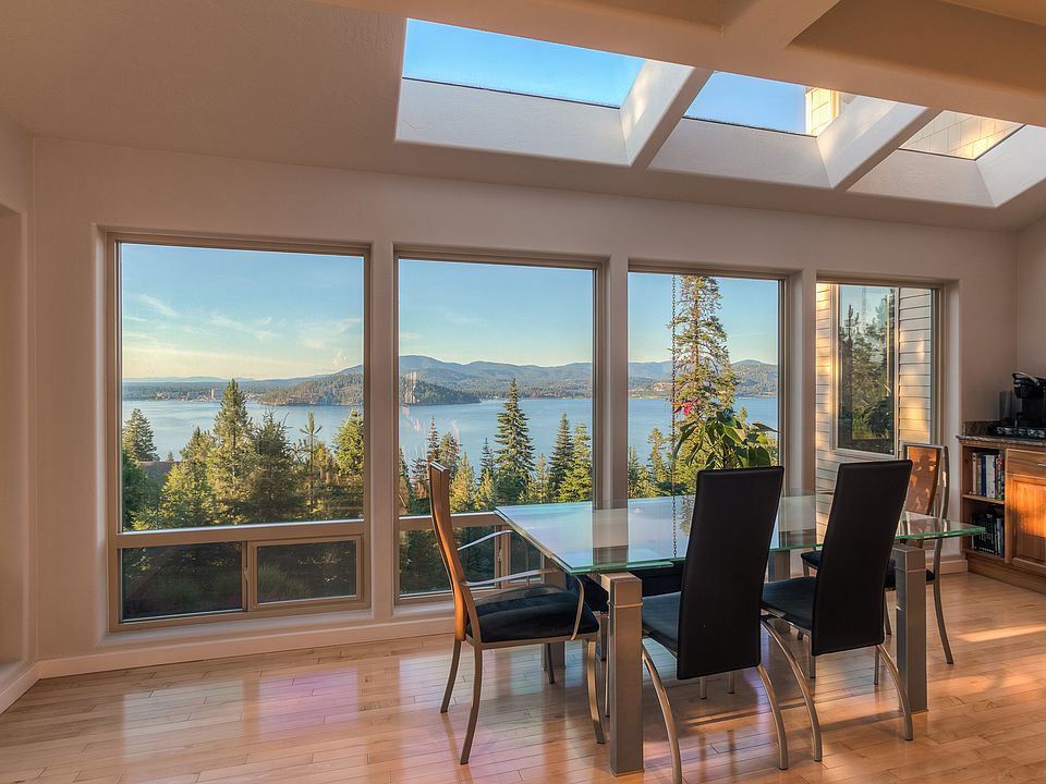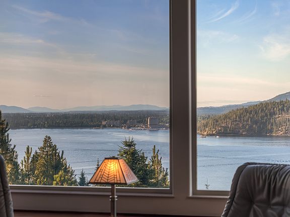 A beautiful 4383 sq ft modern contemporary home fit with a magnificent view of Lake Coeur d'Alene. This architecturally designed Parade of Homes winner was built in 2000. Lots of tall windows, fully updated appliances, a high-end home theater, and a walk in wine cellar are just a few of the features this home has to offer. Surrounded by tall beautiful coniferous trees this home has the best of all worlds. An easy drive gets you to beautiful downtown Coeur d'Alene in just 15 minutes. With a public boat launch and fully paved roads, there is no shortage of activities.