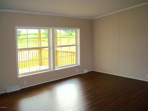 This home has a nice, country setting on 3.3 acres and features 3 bedrooms and 2 full bathrooms. The home has an open concept main living area with a large kitchen. The master suite has a walk-in closet, two sinks, a garden tub and full sized shower. There's also a large deck and covered front porch. The pole barn is 24x36 plus an 11x15 storage shed. Easy commute to Grand Rapids or Muskegon. Move-in ready with fresh paint and new flooring throughout the home.