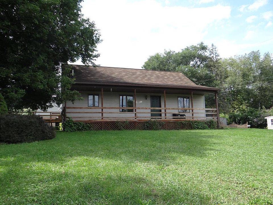 This 3 bedroom home is larger than it looks! 1 bedroom, 2 full baths & an office/nursery on the first floor. Kitchen has beautiful oak cabinetry and has an additional countertop with storage. Adjacent is the formal dining room. 2nd floor features 2 bedrooms w/ a decent-size room between them for additional living space. Basement is partially finished. Rec room has tongue-&-groove walls, cement floor. Separate electric heater for that space. There is a workshop area, laundry room & utility room. Covered front porch, back deck, shed and nice-size yard. Goes back to the trees. New garage roof.