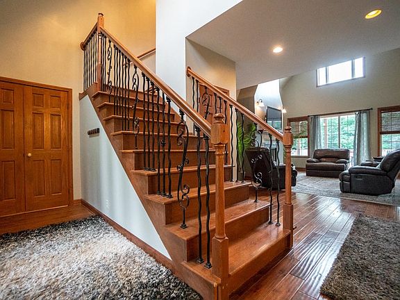 Here's your chance to own a remarkable 5 bedroom home with a 5.5 car garage in beautiful Rustling Oaks subdivision! This gorgeous home is perfect for entertaining with its large rooms, beautiful hand-scraped hardwood floors, and open vistas to the oversized deck and brand new backyard pool! The large kitchen is perfect with built-in oven, large island, solid surface countertops, and casual eating area. The great room overlooks the rear of the home and has volume ceilings and fireplace. The main floor master is perfect retreat at the end of the day! Upstairs you'll find two more bedrooms and a full bath along with a finished bonus room/5th bedroom with its own private half bath. The oversized 3 car attached garage along with a huge 2.5 car detached garage with loft space offers plenty of space for vehicles and toys! Huge covered wraparound porch is perfect for your largest gatherings! This home is a must-see...schedule your appointment today!