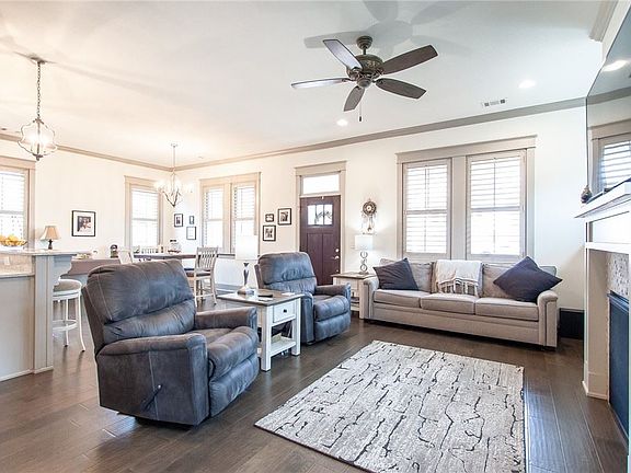 Beautiful craftsman style cottage home in the desirable National Village neighborhood. Open floor plan. PRIVATE wooded backyard. Spacious living room with a cozy fireplace. Abundance of counter space. Room for four barstools. Lots of storage. Professionally designed and landscaped yard. 30 year dimensional roofing. Tile surrounds the tub. Quartz countertops. Crown molding. Zero Entry Shower. Full Shower Bench. Hardwood flooring. Attached double carport and side porch. Appliances remain with home. Plantation Shutters. Gutters added. 12 x 12 flagstone rock pad added. Extra room to park golf cart. Cabinet w/ extra storage added in Master BR. Many more extras throughout the home. Amenities include access to the Marriott's 2 salt water pools and 1 indoor pool, dry saunas, exercise room 8 clay tennis courts & 4 pickleball courts. Complimentary play on the short course with unlimited range balls at the Grand National Robert Trent Jones Golf Trail. Walking trails throughout the neighborhood.