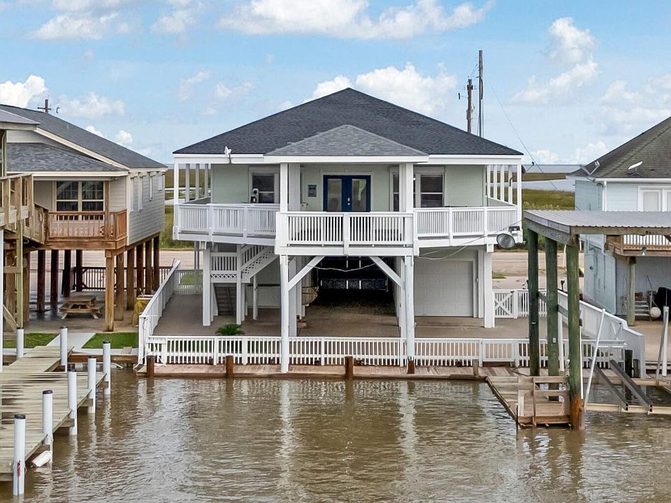 COASTAL CHARM in Matagorda!! This beautiful, MOVE IN READY 3/2/3 Waterfront property is located on the Colorado River. Amazing views with easy access to East and West Matagorda Bays. Fisherman's Paradise - covered boat slip with lift plus a boat garage. Beautiful kitchen opens to Family Room with great views! Enjoy relaxing or entertaining on the great covered deck overlooking the Colorado River. Wrap around porch, large laundry/utility room, cargo lift and it is dog/kid friendly with balcony and lower portion being completely fenced are awesome bonus features for this property. In 2023, the home was completely remodeled - New Paint (Interior & Exterior), New Flooring and Baseboards, New Appliances, a patio roof was added above deck, all decking, railings and fence were rebuilt and painted. New A/C in 2024 and New Roof in 2021. Don't Miss this Opportunity to own a place on the Texas Gulf Coast!