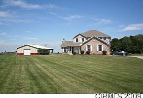 #11676-Peaceful country setting on 5.45 acres. The long driveway welcomes you to this newer 2800+ sq.ft. home with 4 BR's, 2.5 BA's with main level master suite offering tray ceiling, bath with double vanity, whirlpool tub and shower. Spacious vauled ceiling GR with brick fireplace. Inviting foyer offers open oak stairway. Fully applianced kitchen offers center island, separated dining area and 13x19 Sunroom leading to concrete patio with relaxing hot tub. 36x40 pole building has cement flor, 3 stalls, electric and overhead door.