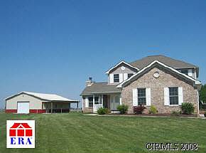 Motivated Seller! Would you like a 5 plus acre mini farm, with fenced pasture for horses, long driveway back to a lovely 2864 square foot family home and a 36 x 40 pole building with cement floor and 3 stalls? Here it is!! Great room with brick fireplace, breathtaking foyer and open stairway, leading to an 11 x 16 loft. Large master suite with tray ceiling, bath has double sin vanity, whirlpool tub and shower. Oak kitchen applianced with Center Island. Enjoy this 13 x 14 sunroom opening to cement patio and hot tub. Pole barn with electric and overhead door.