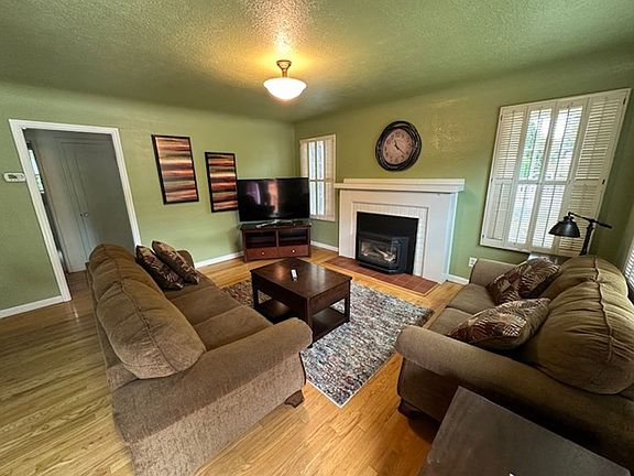 Furnished 3 bedroom and two full bath home is ready for you! One bedroom on the main has a queen bed and six drawer dresser to store your belongings. Upstairs bedroom is a double bed with side tables, 50 inch TV, lamp and more storage. The kitchen has a side by side fridge, pull out shelves, stove, fridge, dishwasher and garbage disposal plus all the items you need for daily use plus more! The living room has a couch and loveseat, coffee table, gas fireplace, 55 inch TV on a stand, side tables and lamps. Enjoy gathering around the dining room high table with six chairs and an extender. Third room on the middle landing does not have access to cable but has a TV that can be used as a monitor or connected to Wifi, cadet heater, desk and lamp, pull out couch and a standing fan to stay cool. The bathroom has a soaking tub, standing shower, sky light, tile floor and vanity sink. The large landscaped back yard has every other week landscaping provided, a play structure with swings and slide, blueberries, and a shed for storing additional items. The deck to the backyard is private and covered in wisteria ready for you to hang your outdoor lights and enjoy this dreamy space. The utility room off of the kitchen has an additional fridge, washer and dryer, tools and items that you may be used as needed. Cat or Small dog on approval. No Smoking. Do not miss out on an opportunity to live in a furnished home in a great neighborhood on an oversized lot near Oregon State Campus on a wonderful dead-end street! This home has air conditioning.