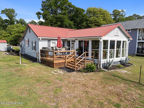 This beautifully restored 1930s bungalow blends timeless charm with modern efficiency. Nestled on nearly an acre (.99 acres) along the peaceful Shallotte River, this 2-bedroom, 2-bath gem offers expansive river views and serene sunset vistas from the stunning sunroom. Inside, you'll find a spacious family room perfect for relaxing or entertaining, along with numerous thoughtful upgrades. The home has been lovingly recreated with energy efficiency in mind, featuring in-wall insulation, a gas pack heat pump, two mini splits for enhanced summer cooling, a tankless water heater, and a gas stove. A durable metal roof adds peace of mind and long-term value.