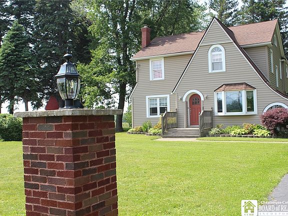 Recently updated kitchen with tiled flooring, quality cabinetry, and countertops, built-in appliances, and island with breakfast bar. Formal dining room with built-in corner cabinet, spacious living room with beautiful, built-in cabinets accenting the fireplace. Den. Hardwood flooring throughout. Three nice sized bedrooms (potential for 4) with closets, 1 1/2 baths, full attic and basement for additional storage space. Many recent improvements include; newer, vinyl siding and windows, roof, plumbing, electrical, boiler, hot water tank, and septic system. Deck off the back of the home and concrete patio. Detached, two car garage with concrete flooring and electric opener, offers additional storage space. Beautiful yard, offering nearly an acre. Nicely landscaped and well maintained for your enjoyment. This one has it all! Don't wait on this one!