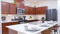 - Exterior features: Bicycle storage, Electric Vehicle Charging Station, Heating system: Forced Air, High speed unlimited WiFi, Utilities included in rent, modern amenities and appliances, new build, residential, safe