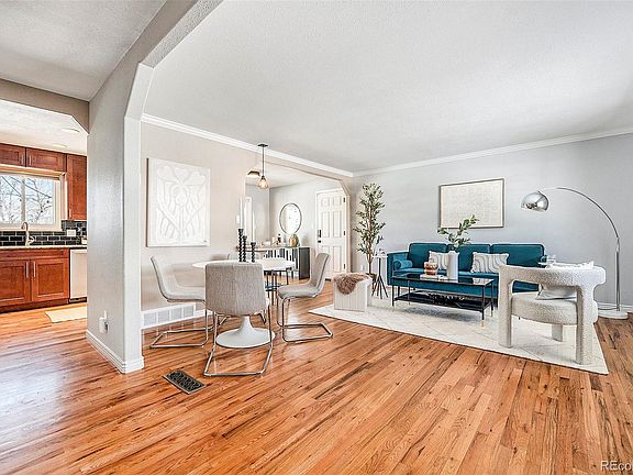 Welcome to this beautifully designed tri-level home, situated on an ample lot in prime Applewood! The main level offers an inviting open layout with gleaming hardwood floors, seamlessly connecting the spacious living and dining areas to a large, well-appointed kitchen. Sliding glass doors lead to an expansive backyard - perfect for outdoor entertaining or quiet relaxation. Upstairs, you’ll find three comfortable bedrooms, all with hardwood floors, and a full bath. The lower level provides a cozy, carpeted family room, an additional bedroom, and a convenient second bath - ideal for guests, a home office, or a private retreat. This section of Applewood offers easy access to daily amenities. Parks are a walk away, a grocery store around the corner, and immediate access to I70 makes commuting or mountain travel a breeze. Don't miss this incredible opportunity - schedule your showing today!