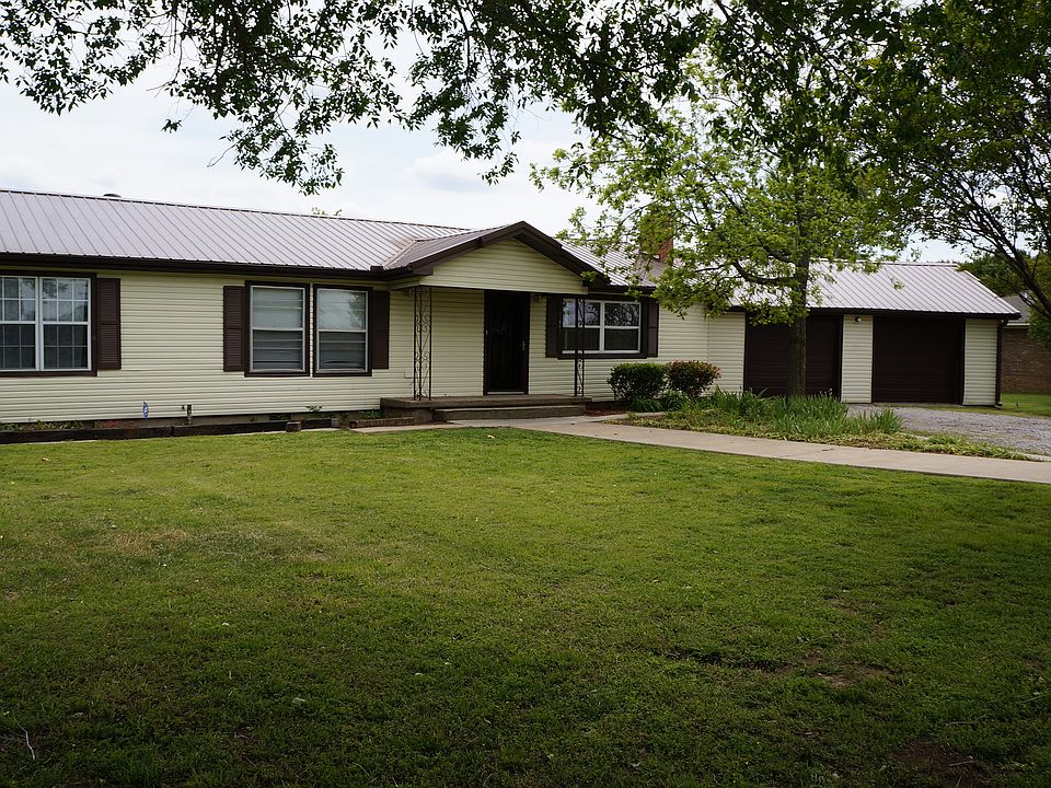 : Great Location! Vinyl siding, new vinyl dbl.paned windows in2012, new metal roof in 2011 and new 4-ton central heat &Air unit in 2010, inside entrance to cellar, enclosed back porch, dbl.garage, (west side doesn’t work) 3 bdrms., 1.75 baths, living room has fireplace w/gas logs, den or dining room w/built in shelves, hardwood floors in den/dining and 3 bedrooms. Office area, kitchen has Kenmore dishwasher, gas cook stove, refrigerator . Deck on back has view of neighboring pond. OG&E Elec., ONG gas, city water-although not in city limits ADT alarm system can be transferred if new owner wants. Located on S. edge of Pauls Valley a block or 2