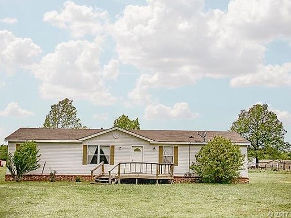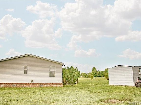 Very nice Doublewide mobile on almost 3 acres. Minutes from Hwy & schools. Cul-de-sac, fenced pasture, 3 bdrm, 2 bath, skylight. Includes all appliances. 2 storage bldgs w/bonus mother in law bldg. Newer storm shelter w/warranty.