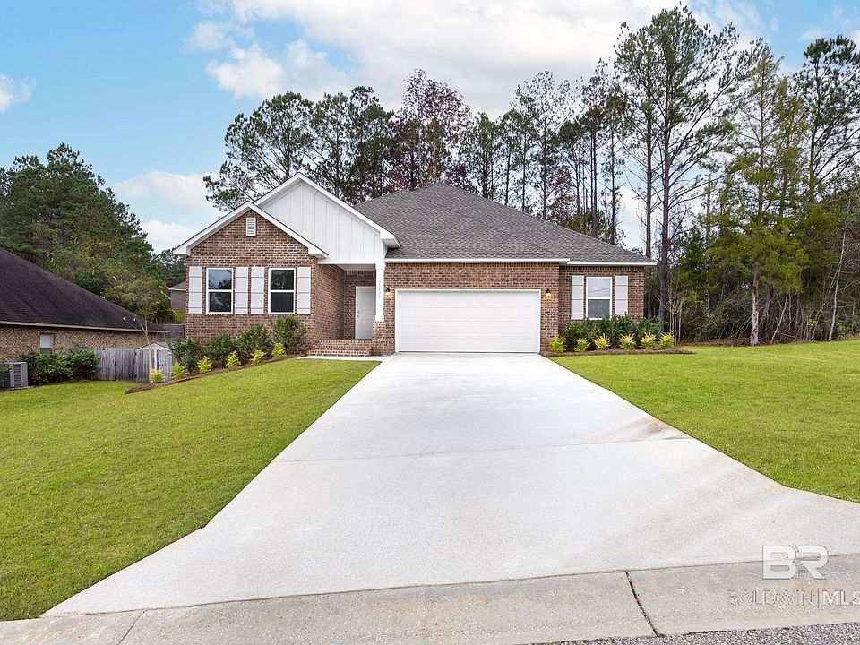 *** Spanish Fort School System- Move in ready *** Welcome to this inviting 4-bedroom, 3-bathroom home that combines functionality with style. As you step through the front door into the welcoming foyer, you'll immediately sense the warmth and comfort of this well-designed space featuring EVP in main areas and carpet in the bedrooms. To the left of the entry, a versatile guest room awaits, providing a private and comfortable retreat for visitors. This room is thoughtfully positioned to offer convenience and privacy, making it an ideal space for overnight guests or a home office. The heart of the home lies ahead, where an open-concept living area seamlessly connects the spacious living room, dining area, and kitchen. Windows flood the space with natural light, creating an inviting atmosphere for gatherings and everyday living. The kitchen, featuring stainless appliances and upgraded granite counter tops, ample counter space, and a convenient center island. Whether you're preparing a casual meal for your family or hosting a dinner party, this well-appointed kitchen is up to the task. The primary bedroom offers a spacious bedroom and an ensuite bathroom with double vanities and a tiled walk in shower. Two additional well-proportioned bedrooms share a hall bathroom, providing comfort and convenience for family members or guests. A separate laundry room adds practicality to daily living, and the attached two-car garage with a workspace provides secure parking and additional storage. Enjoy evenings on the large Lanai overlooking the back yard. Don't miss the opportunity to make this house your home! Ask about our special interest rates and incentives for buyers!
