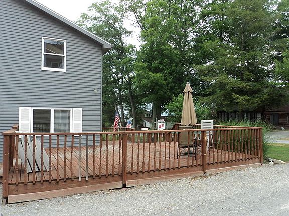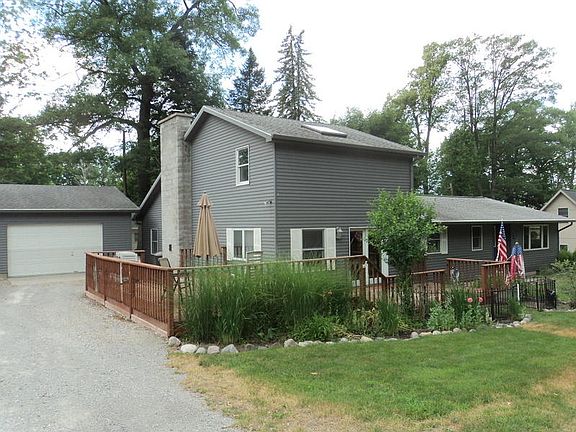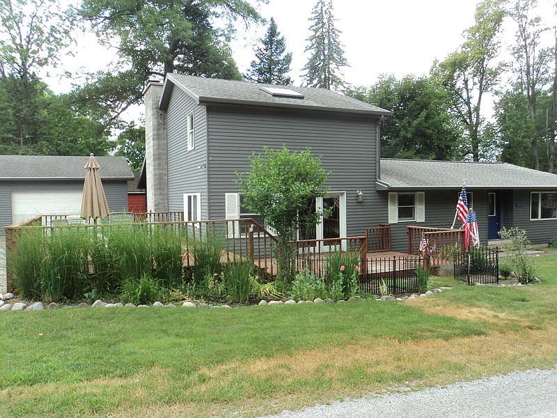 Hurry & Pack Your Bags! Waterfront fun without the taxes! This 4 bedroom, 1 1/2 bath lake access home has provided year round enjoyment for the sellers & past generations for numerous years! Well maintained, built in the 60's and expanded in 1995 with a vast family room that boasts 16 ft vaulted T&G ceiling, complimented by rustic looking floor to ceiling stone fireplace & skylights for natural lighting! Additional living space is perfect for entertaining in the 12x36 (2014) remodeled kitchen/dining/living combo, that features quartz counter-tops, contemporary birch cabinets, and a decorative 2nd fireplace. Additional improvements include satin finished ash flooring throughout the home (2014), remodeled bath (2019), stainless appliances (2014), new well (2008), roof (2006), furnace &
