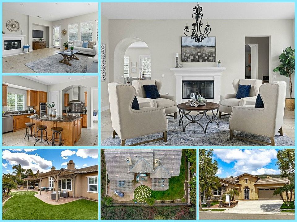 OVER 1/4 ACRE LOT! SINGLE STORY VIEW HOME ON A CULDESAC located in the coveted neighborhood of LA COSTA OAKS. Sprawling single story ranch style floorplan with large rooms. Kitchen features granite counters, built in GE Monogram refrigerator, chef quality cooktop, double ovens and abundance of cabinets. Office off kitchen could be pantry, breakfast room or exercise room. 3 car garage. True Master Suite with fireplace. Community pools and clubhouse. Award winning schools.