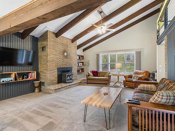 - FEATURES: Cable, Near Snowmobile Trails, Range, Refrigerator, Dishwasher, Garbage Disposal, Deck, Dryer, Washer, Cathedral Ceilings, Ceiling Fans, Wood Fireplace, Stream/Creek, Dock, Wood Stove