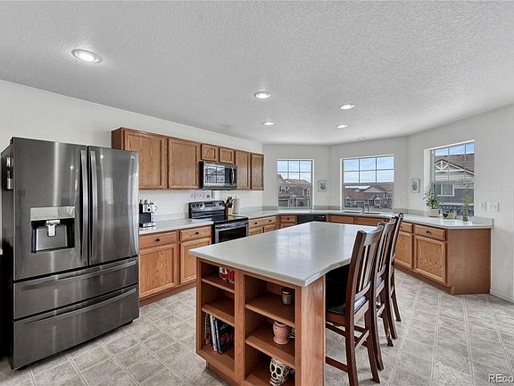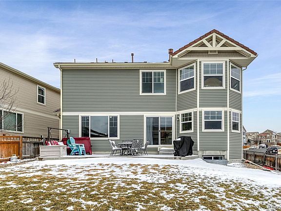 Open floor plan with an entertainment size kitchen, and good sized corner lot on a cul de sac in the heart of The Meadows. Main floor has 2 large living areas, tile surround fireplace, bay windows, Corian countertops, and lots of natural lighting. Primary bedroom suite is extra large with an additional living area, 3 sided fireplace, bay windows with great views, 5 piece bathroom, jetted tub, and walk-in closet. Upper level has 3 more bedrooms with walk-in closets and a loft. Larger sized back yard is a nice play area, has a concrete patio for outdoor enjoyment, and is fully fenced. Unfinished basement has 9' ceilings & a good layout for a custom finish. Other items include cement tile roof, auto sprinkler system, central A/C. Close proximity to I-25, DTC, elementary, middle, & high schools, several parks, hiking & biking trails, tennis courts, golf courses, hospital, stores, Outlets at Castle Rock, Taft House, Grange, The MAC, & more.