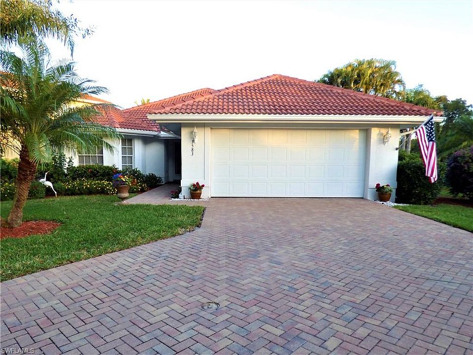 Brand new roof being installed! Fantastic opportunity to purchase a meticulously maintained one-story, 3 Bedroom/2 Bath lakefront single family home. Offered turnkey and located in the best tennis community in Naples! This large corner lot with lush landscaping offers both privacy and a beautiful view of the lake. Original owner has kept this home in like-new condition and only lived in it seasonally! The spacious great room plan offers split bedrooms, vaulted ceilings, bay windows, tile throughout the living area, like-new carpet in bedrooms and a new air conditioning system (Dec. 2017) The large kitchen features white cabinetry with an abundance of granite countertop space and tile backsplash. Enjoy a brick paver driveway, oversized covered lanai with an additional lakefront paver sundeck. This gated community features 16 tennis courts, full-service tennis program, 2 community pools, poolside cafe'/bar, bocce, and an active social calendar. This is perfection!