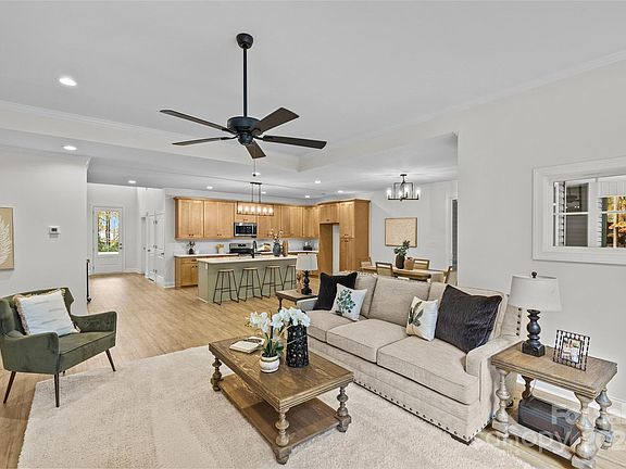 Beautiful one-story 3 bed, 2 bath new build by Wightman Custom Homes . No HOA! Front and Back covered porches with ceiling fans . Very large living room open to kitchen and dining , perfect for gatherings . Huge island with sink and dishwasher. Very nice soft close cabinetry in kitchen . This home offers beautiful crown molding just about every where but secondary bedrooms. Upgraded Wood plank flooring in entry , living room and kitchen that is a must see.