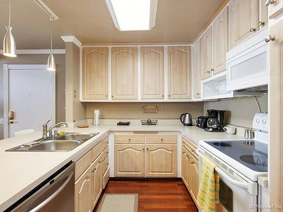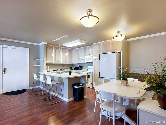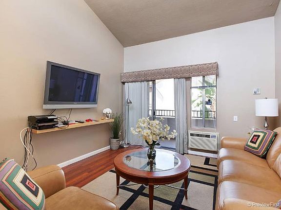 Gorgeous 4 BR/2BA upstairs condo with cathedral ceilings, full-sized kitchen that is fully stocked with the basics including: utensils, pots/pans, coffee, sugar etc. Air-conditioning in living room and in master bedroom, brand new Samsung washer/dryer in the unit, hardwood floors throughout. Balcony off of the living room. High speed internet included, and each room has it's own tv with a Roku. Community pool, Jacuzzi and BBQ grills. 2 assigned parking spots (one is a carport). Master bedroom: 1 king bed and private full bathroom with a large walk-in shower and a desk/chair. 2 HUGE closets. 2nd bedroom: queen bed with desk and chair. 1 HUGE closet. 3rd bedroom: 1 queen bed and 1 HUGE closet. 4th bedroom: 1 queen bed and 1 normal size closet. Guest bathroom has tub/shower combo. Open spacious concept living space with the living room, kitchen and dining all as one bright, airy and comfortable space.