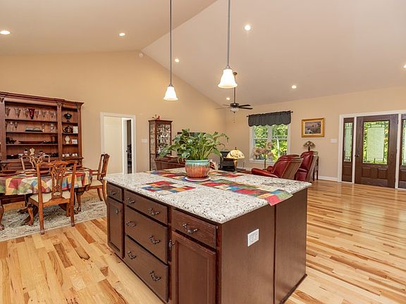 Down the winding driveway, you will find this magnificent Rock River Home tucked away on 8 acres. Weather you enter from the 2 Car Garage or the front Door, you can't help but notice the beautiful Hickory flooring, that goes great with the dark Kitchen cabinets and granite countertops. The Kitchen has lots of cabinets, a large Island and elegant Stainless Steel Appliances. It will surely make preparing your next meal enjoyable. The primary Bedroom has it all. A large walk-in closet and an In-suite bath, with a large soaking tub and shower. If that wasn't enough, just outside of the In-Suite bath, is a covered and screened in porch, with a Hot Tub. On the opposite end of the home you find 2 more Bedrooms and a full Bath. Weather you are soaking in the Hot Tub, relaxing on the screened/covered back porch, or the soaking up the sun on the stamped patio out back, this home has many locations to enjoy the sights and sounds of living in country!!