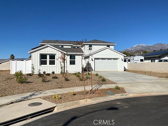 Welcome home to Farmstead, a community of 16 homes located in Yucaipa, CA with no HOA dues. This beautiful, new construction home features 4 bedrooms (2 master bedrooms, one on each floor), 3.5 bathrooms and a 3-car garage. As you enter the kitchen you will find real-wood cabinets, quartz/granite counters, stainless steel appliances, huge island and plenty of room to entertain. The great room is grand and is accented by an oversized 42" fireplace. Energy efficient in every way with solar panels, tankless water heater, LED lighting throughout, cool roof and extra insulation in the attic. Located on a cul-de-sac you will love the views of the mountains and valley.