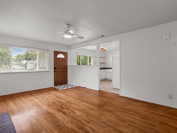 This move-in ready home features; original hardwood floors, a wood burning fireplace, a recently updated bathroom and is in a convenient location near parks and schools! The home has three bedrooms and one bathroom, and a garage conversion provides a laundry area with two additional bonus rooms, offering flexible space for your needs. The covered back patio offers a spacious outdoor area for gatherings or everyday use, along with a well-sized yard that has side access suitable for a boat or trailer parking.