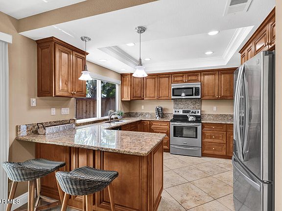 Charming, single-story with pool-sized backyard. Step in from the brick porch to find an impeccably-maintained home complete with neutral paint, recessed lighting, plantation shutters, and dual-paned Milgard windows/sliders throughout. The gorgeous, remodeled kitchen features custom cabinets, granite countertops, countertop seating, stainless steel appliances, and a window that looks out to the backyard. The spacious master suite is light-and-bright, with pitched ceiling, mirrored closet doors, remodeled bathroom, and slider to back patio. Both bathrooms have custom sink vanities, updated showers, and designer fixtures and finishes. The backyard is private and serene, with plenty of space to entertain and play. New patio pergola, new wood side fences and gate, and spacious dog run. 3-car garage with ample storage and indoor laundry room. Pride in ownership throughout the Copperwood community and no HOA! Enjoy the neighborhood's nearby Northwood Park.