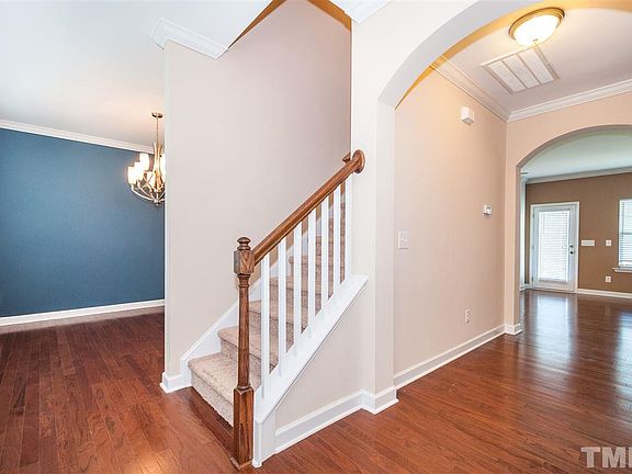 Beautiful move in ready home. Gleaming hardwood flrs, formal dining rm, open kitchen has granite counters, tile back splash, glazed cabinets, SS appl's & breakfast nook w/bay window. Large living rm features a corner gas frpl & access to the covered patio. 1st flr office w/french door entrance. Spacious master has glamour bath & walk-in closet. 4 bedrooms plus a bonus rm. Nice covered front porch and rear patio. Convenient to Buffaloe Rd Park w/pool, ball parks & playground. Minutes from I-540.