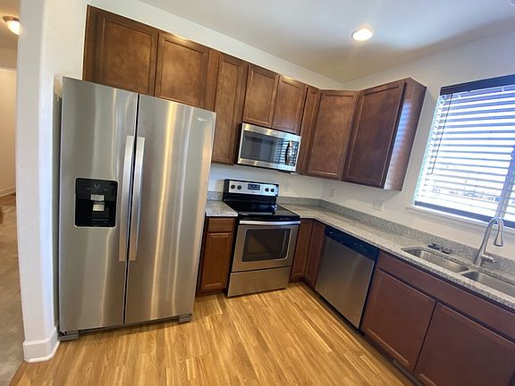 Schedule a showing at your convenience between 7:00am - 7:00pm. This stunning brand new 4 bedroom, 3 bathroom townhome in Aurora will welcome you with 1,719 square feet of living space! The beautiful kitchen comes complete with all stainless-steel appliances, an island, and granite countertops. Other great features of this home include air conditioning, walk-in closets, vaulted ceilings, washer and dryer hookups, and a 700 square foot unfinished basement perfect for storage. Parking for this property is an attached garage. Enjoy the wonderful weather of Colorado from the patio. Also nearby are Quincy reservoir and Cherry Creek Park. Travel is easy with quick access to E-470. Nearby schools include Dakota Valley Elementary School, Sky Vista Middle School, and Cherokee Trail High School. Sorry, no pets allowed. Rent includes sewer, trash, and snow removal. Schedule a showing at your convenience between 7:00am - 7:00pm. Real Property Management Colorado www.303rent.com 303-873-RENT(7368) Equal Opportunity Housing *All leases subject to application, administration and processing fees. *Prices and availability subject to change. Real Property Management Colorado, LLC cannot verify the accuracy of property information listed on third party sites. Please visit Real Property Management Colorado, LLCs website to confirm property information. This property allows self guided viewing without an appointment. Contact for details.