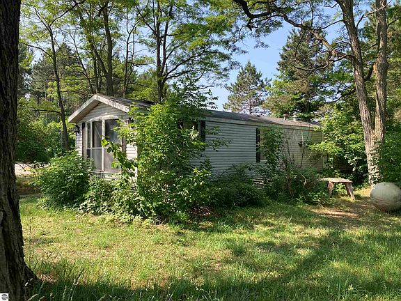 CASH only, no exceptions. 3.04 acres across the street from Glen Lake Community Schools. Old survey attached, new survey is suggested. 30x40 pole barn needs new overhead door, perfect for boat storage. 1999 house trailer has 2 bedrooms & 1 bath, new furnace in 2022, roof is good, 840 square feet. Mostly needs loving hands. Well & septic on site, no health dept file, Seller will not update. All utilities available at the road. Sold as is/where is.