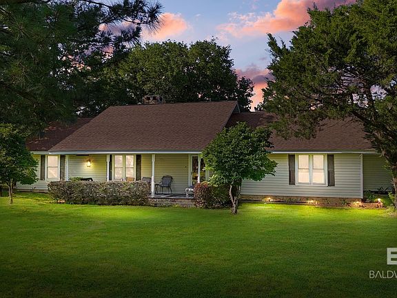 Discover a slice of tranquility with this rare and versatile property, where the land itself is the star. As you meander through the trees and gentle rolls of the back terrain, a deep sense of peace and quiet embraces you. The property features a charming 3-bedroom, 2-bathroom country home. The kitchen is thoughtfully updated with granite countertops, providing a stylish space for cooking. A cozy wood-burning fireplace enhances the living area, while a large covered front porch invites you to sit back and take in the serene surroundings. Not to mention low maintenance living, with a 2024 new roof and energy-efficient windows installed in 2020, keeping energy cost down year round. Adding to its appeal are multiple outbuildings with plenty of lighting and receptacles, includes a 20x20 shop, a 12x30 barn, and two other useful structures,12x10 and 12x19 (currently used as a corvette garage), all perfect for hobbies, storage, or projects. The property has city water, a private well with a pump house, and a small pond stocked with fish, making it ideal for those who value both practicality and natural beauty. What truly makes this property extraordinary is its rare division into three separate parcels, offering endless possibilities for multi-family living, future development, or creating a legacy property. Though tucked away in the countryside, this peaceful retreat is just minutes from I-10, providing quick access to Mobile and Pensacola. Just minutes to Bay Minette and Daphne. Enjoy the best of both worlds: serene country living with the convenience of nearby shopping, hospitals, and entertainment. Come experience the potential, charm, and serenity of this unique property. Home ppin 118705 Larger parcel approx 4 acs ppin 203545 and Lot with separate septic ppin 99005 Buyer to verify all information during due diligence.