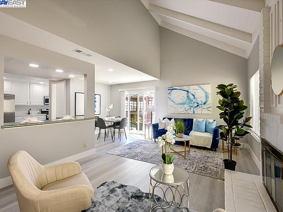 Beautifully Updated|Vaulted Ceilings|Abundance of Natural Light|Community Pool and Sport Court! Bright, updated interiors and a location close to everything Newark has to offer highlight this inviting 3 bedroom, 2.5 bathroom home set in the Mirabeau Park neighborhood. Spacious foyer leads to a light filled living room that showcases a vaulted ceiling, a centerpiece fireplace, and an adjacent dining room. Updated flooring, new paint, and upgrades such as new kitchen appliances create a refreshed ambiance throughout. Primary bedroom features a vaulted ceiling, separate sitting area, and an attached ensuite bathroom that features double closets, and a stall shower. Secondary bedrooms with new carpeting and sliding door access to the outdoor balcony. Other wonderful features include an interior laundry area, dual pane windows, and updated plumbing. This community provides you with easy access to major shopping and is minutes from HWY 84/Dumbarton Bridge, HWY 880, Facebook, and the Silicon Valley.