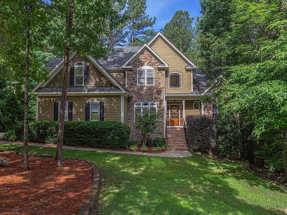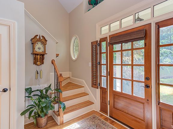 Stunning True Custom on 1.27 landscaped/private wooded acres backing to natural creek. 1st floor features updated chefs kitchen w/all Bosch Appl, cherry cab, island w/sink & break bar, pantry. Hardwood through main living area & MBR. Owners Suite w/updated luxury bath, formal DR, Family & Living rooms (both w/fireplaces). 2nd flr boasts 2nd MBR, 3rd br & 4th br/bonus. Screen porch, (2) decks & fenced yard. Walk-in crawl w/workshops, office & storage. Must See! Great Wake Forest location!