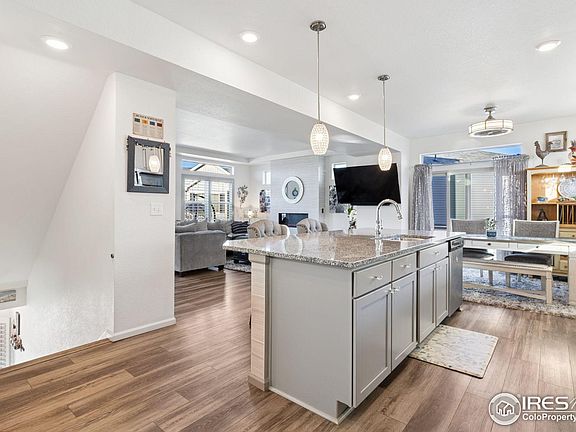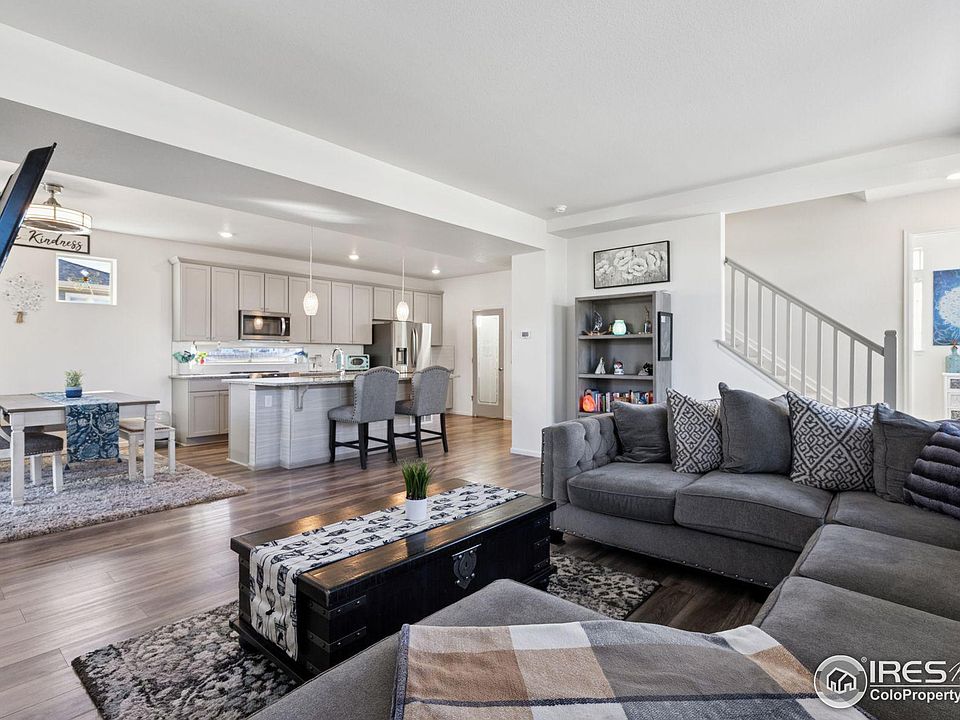 Don't miss out on this incredible deal! Priced below market value for a quick sale, as the seller is relocating out of state. Nestled on a corner lot with breathtaking, views of the Rockies, this stunning 3-bedroom, 3-bathroom home is your perfect retreat. Built in 2021 and thoughtfully upgraded with $50,000 in landscaping and custom updates inside, this residence is designed to impress and promises remarkable value for its new owner. Step inside to a light-filled interior and open floor plan. The main level features a dedicated office space-ideal for remote work-and a modern kitchen with an expansive island, walk-in pantry, upgraded induction oven (with gas available), new refrigerator, pull-out cabinetry, and striking granite countertops. The seamless flow of this space makes it perfect for entertaining or enjoying cozy evenings at home. Outdoor living takes center stage with multiple spaces to relax and soak in the scenery. Whether it's the deck, front balcony, porch, or back patio, you'll find your perfect spot to unwind in the sun or shade. With Trex decking, a storage shed, and a drip irrigation system keeping the xeriscaped yard lush yet low-maintenance, you'll spend more time enjoying and less time maintaining. The vibrant community enhances the lifestyle offered by this home, boasting amenities such as a clubhouse with a gym, two pools, parks, walking trails, and even a frisbee golf course. Located directly across from a pre-K-8 school and just five minutes from Scheels, shopping and dining options, this neighborhood strikes the perfect balance between tranquility and convenience. Highway 34 provides quick access to Big Thompson Canyon and Rocky Mountain National Park, while Old Town Loveland is a mere 15-minute drive away. This meticulously designed home is not only a place to live but a gateway to an incredible Colorado lifestyle.