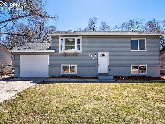 Beautifully remodeled home that boasts 4 spacious bedrooms, 2 bathrooms & an attached oversized 1 car garage! Located in an inviting, quiet neighborhood with mature trees. Freshly painted exterior! NEW EVERYTHING - newer range/oven & windows! Good sized lot with a large rear fenced yard. This "new/newer everything" home provides an attractive bi-level style floor plan! New lighting, hardware, carpet, luxury vinyl tiles, custom ceramic tile backsplash, appliances, counters, ceiling fans, 6 panel doors...just to name a few amenities! Living room/great room offers a tons of space for guests/entertaining and features a skylight. Large windows throughout providing immense natural light! Whole house custom interior paint. Beautiful kitchen/dining room combo with new/newer appliances including an over the range microwave, dishwasher & a range/oven. Eat in dining area walkout to the large wood deck & large fenced rear yard. More than ample new shaker cabinets, high definition countertops, custom decorative back splash & luxury vinyl flooring. Full bathroom on upper level provides a custom decorative ceramic tile tub/shower surround, new luxury vinyl flooring, new/newer fixtures, lighting & more. Master bedroom on the upper level with generous closet space & ceiling fan. Another living space/family room on the lower level with 3/4 bath and 2 bedrooms. Exceptional private rear yard w/so many possibilities; space for BBQ's, make this backyard your oasis. Imagine the outdoor living you could create w/all this space; horse shoe pit, trampoline, install a shed, doll house, sand box, custom cook area, water fountain sitting area-the ideas are endless! Entertaining possibilities are limitless! Just minutes to the Ft. Carson, hiking trails, shopping, restaurants, schools & I-25. Come take a look-you won't be disappointed!