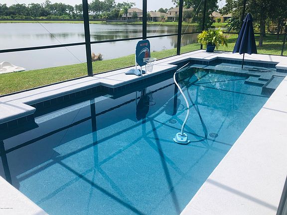 Beautiful Pool Home in West Melbourne on the BIG Lake. Welcome home to this well maintained property. The salt water pool is newer and screened in for full enjoyment. The sunsets are amazing here. Be prepared to relax out back for hours. This home boasts gorgeous wood floors that you will love. Home is equipped with 3 bedrooms, 2 baths, family room, dining room and a perfect breakfast nook. The large easement adjacent to the property gives plenty of extra space and privacy along the southside of the home.