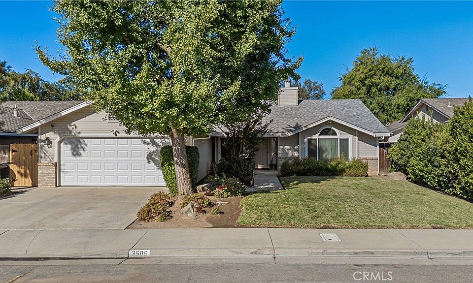 Welcome to this beautifully updated single-story home on a quiet cul-de-sac in North Merced. Offering 3 bedrooms, 2 bathrooms, and approx. 1,665 sq. ft., this home features fresh upgrades including new ceiling fixtures, dual-pane windows throughout, a newer A/C unit, and water heater. The spacious living room includes vaulted ceilings, abundant natural light, and a dual-sided fireplace that also warms the dining or family room. The bright kitchen offers white cabinetry, tile counters, breakfast bar seating, and stainless-steel appliances- stove, microwave & dishwasher. The primary suite has vaulted ceilings and an ensuite bath with tile counters & shower stall. Additional highlights include updated flooring throughout and an inside laundry area. The private backyard offers a patio, lawn, and garden beds perfect for entertaining or relaxing. Conveniently located near Merced College, UC Merced, Mercy Medical Center, shopping and parks. Move-in ready and full of modern touches!