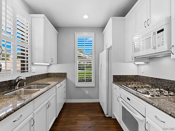Welcome to this updated ground-floor Camino Villas condo! The 2-bedroom, 2-bathroom home is nestled near the vibrant Del Mar Highlands Town Center & One Paseo in the heart of Carmel Valley. Interior amenities include an updated kitchen with white cabinetry, beautiful granite countertops, and more! Laminate flooring and newer paint throughout with travertine tiled bedrooms. Two primary suites each with their own en-suite bathroom make this your perfect escape. The unit provides abundant natural light, zero stairs into the unit, and offers an oversized private patio Onsite amenities include a swimming pool and spa, tennis courts, fitness center, and covered parking.