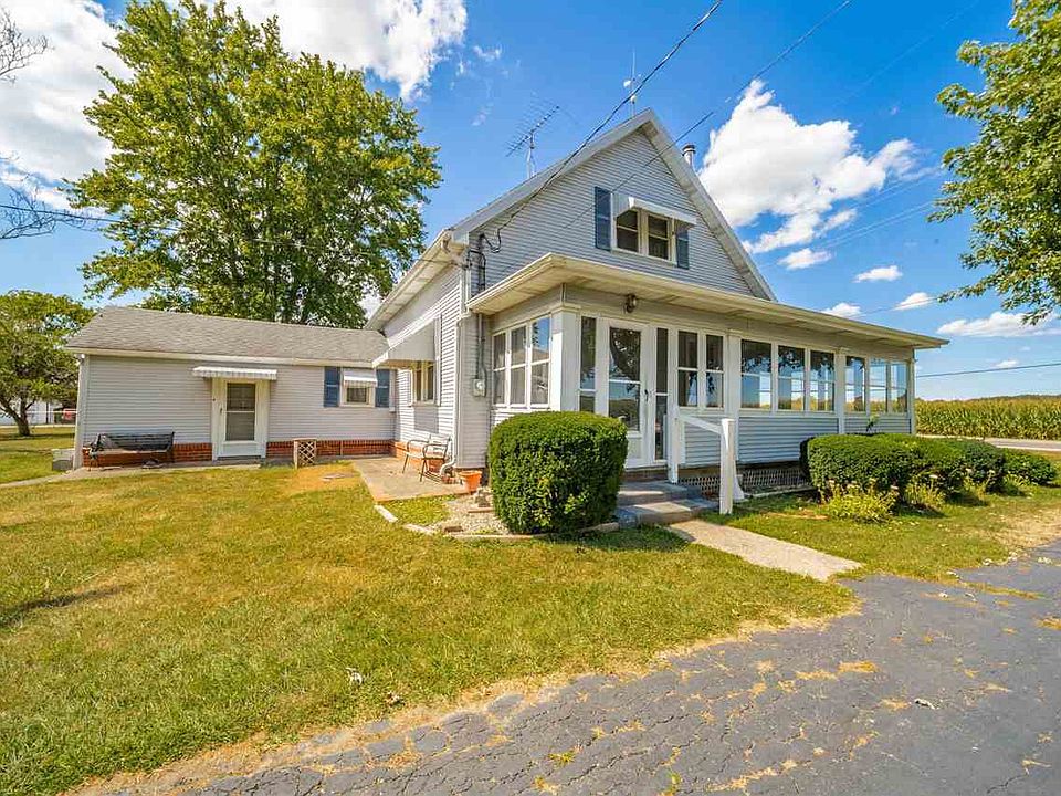 Welcome to 3585 E St Rd 38, an inviting farmhouse nestled on 7 acres in a peaceful rural setting. This charming property features a detached garage with workshop space, perfect for hobbies or storage, and multiple smaller outbuildings offering versatile use. Inside, the main level includes common areas, one bedroom and a half bath, while the second floor provides additional living space with two potential bedrooms and a full bath. Ideal for those seeking room to spread out with a touch of country character, all just a short drive from town conveniences!