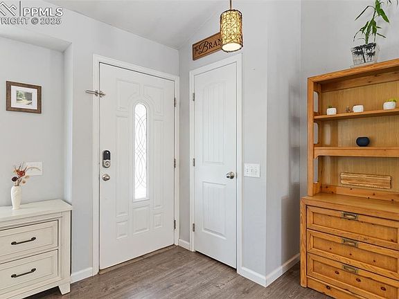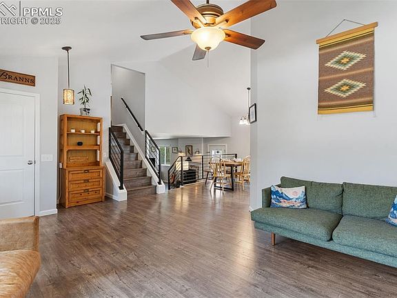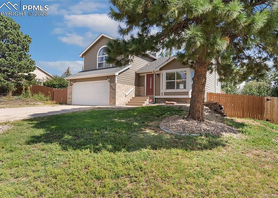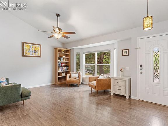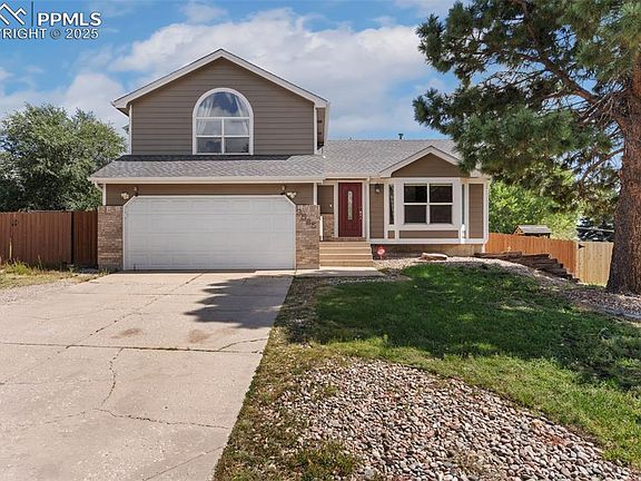 Tastefully updated with modern finishes, this 4-bedroom, 3-bathroom home also includes an additional office or multi-use space. Living areas are flexible throughout, featuring both a living room and a family room that provide plenty of space to gather or spread out. The updated kitchen features stainless steel appliances, granite countertops, and access to a composite deck plus two additional stone-paver patios (2022), ideal for entertaining or relaxing outdoors. Durable LVP flooring extends throughout the home, and the remodeled lower level (2025) provides a private retreat with a bedroom, living/office area, and full bathroom. Mechanical updates include a brand-new furnace and tankless water heater (2025). The expansive yard offers ample space for outdoor living and activities. It features recently added tiered landscaping beds (2022), double gates on each side for car (2024, one side), RV, or camper access, and a storage shed with a hidden fenced area for out-of-sight storage. Additional thoughtful touches include fresh interior paint and custom window treatments. Enjoy stunning views of Cheyenne Mountain from the front-facing windows and a location that combines convenience with lifestyle, close to Ft. Carson, Broadmoor, Cheyenne Mountain, Downtown, local dining, shopping, and outdoor recreation. Move-in ready and thoughtfully updated, this home is ready to meet your needs for comfort, space, and versatility.