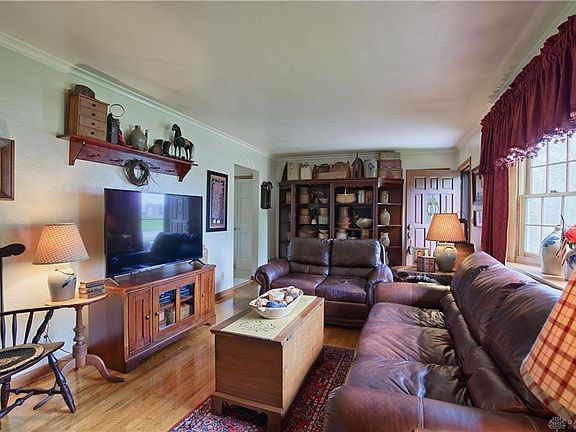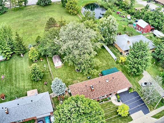 Nice brick ranch with full basement and attached 2 car garage on approx. 1/2 acre lot. Features two gas fireplaces: main floor and basement. Spacious eat-in kitchen. Large rec area in the basement brings total living space up to 1,754 sq. ft. Additionally, the utility room/storage room is an unfinished area that adds another 483 sq. ft. Updates over the last few years include: Stove 2020, Roof 2019, Dishwasher 2019, Water heater 2018. Appliances and bar stay, microwave does not convey. Yard art does not convey. All curtains, except in bedrooms, stay. Attic storage. Heating system serviced every other year. White fence owned by this property, wire fence owned by neighbors. The back yard is large with mature trees and wonderful open space to create the perfect environment for relaxation or play. Home being sold As Is, buyer may get inspections for their own purposes. Convenient to shopping, restaurants and good access to interstate. Welcome Home!