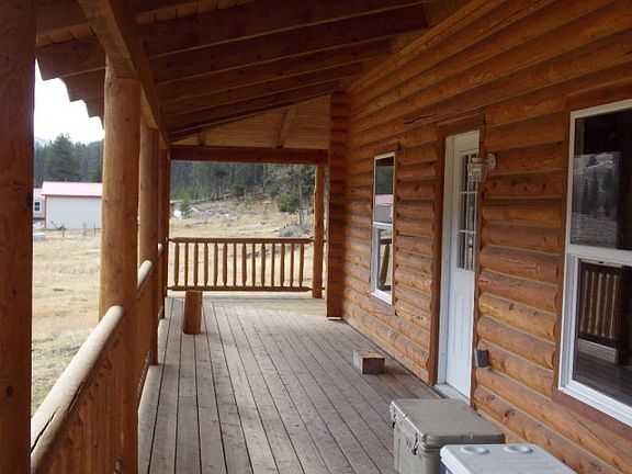 Panther Creek runs across the entire width of this great sportsman property. Located in the Salmon National Forest, with Forest Service ground bordering two sides, this log home can be your hunting, fishing, snowmobiling and recreational base camp. The main floor has a kitchen, dining, greatroom area with laminate wood floors, a bedroom and a full bath. There is a custom gun safe bolted under the stairway. The second floor is completely open and used as a sleeping room. There is a covered deck around three sides of this cabin, a great place to barbecue or just enjoy the mountain air. The Kubota Lowboy II generator supplies all the power needed to enjoy this property, and runs like a top. There is a 304 ft. well on the grounds along with two storage tanks under the house for all your water needs. A 12'x 12' storage building will hold your toys, your tools, what ever you need to have out of the weather. There are two fully fenced pastures and a 6' corral with a loafing shed for the horses in your life. This is a great getaway cabin, come see it right away.