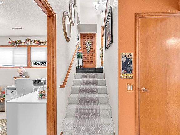 Step into this 1980s split-level gem, full of character and ready for your personal touch. Enjoy the cozy feel of the covered front porch and private outdoor sitting areas. Each upstairs bedroom features its own small balcony, adding charm and a bit of outdoor escape. The spacious primary suite offers a wood-burning fireplace for those cozy evenings. Large windows flood the home with natural light and provide serene views of the greenbelt. Out back, the fenced yard offers year-round enjoyment of Kelly Creek. Thoughtful layout, newer roof, and your canvas!
