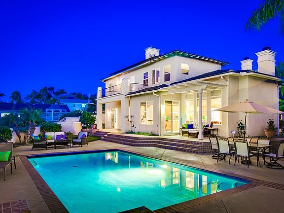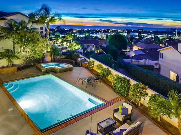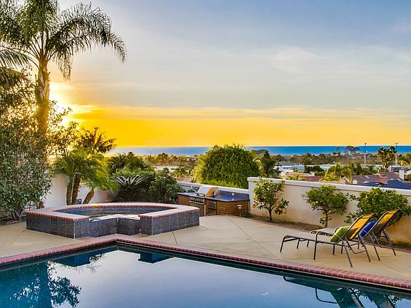 SIT DOWN OCEAN & SUNSET VIEWS! Experience awe-inspiring evening light panoramas from this spacious and big-sky luxury home in Olde Carlsbad. Rarely on the market, this is one of the most sought-after cul-de-sac streets in North County. Soak in an amazing year-round lifestyle centered around the beautifully positioned great room and master suite, pool, spa, BBQ, fire pit, fruit trees, palm trees and ocean breezes. Live your dreams in this superbly designed and captivating home! Enjoy sumptuous interior living in this spacious property of 4,328 square feet. There are five bedrooms and a large bonus room and four and a half bathrooms. The master suite has sweeping ocean views, including a balcony where you can take in Catalina Island and at night the twinkly lights of the Oceanside Pier. The master bathroom is huge with beautiful neutral marble tile, with a spacious adjoining walk-in closet. The signature room is the open plan family room and kitchen combination, with a stone fireplace and a custom walnut built-in. With sweeping ocean views from the kitchen counter, you’ll never get tired of just gazing out at the Pacific or watching the sun go down as you enjoy your favorite drink after a busy day. The yard has mature tropical landscaping with fabulous palm trees and productive fruit trees. It’s close to the Carlsbad Village, freeway access, restaurants, shopping and the beach!